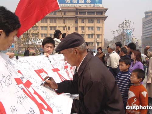 圖:洛陽街頭數(shù)千人簽名反對日本成為常任理事國
