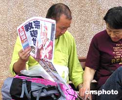 澳門一位女士在主教堂內(nèi)追思教皇,三日,當(dāng)澳門信徒得悉教皇保羅二世離世后,他們紛紛到教堂用各種形式悼念教皇。作者:梁永強