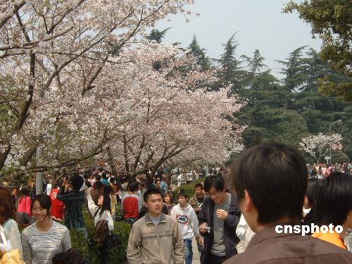 “小園新種紅櫻樹(shù),閑繞花枝便當(dāng)游”。如今,武漢市民把賞櫻踏青作為一種時(shí)尚。盡管校方為了保護(hù)校園環(huán)境和治安,不得不出售賞花門(mén)票(人民幣十元)以控制游人數(shù)量,但絲毫沒(méi)有阻止游人的游興,每天有本校學(xué)生和校外游人數(shù)以萬(wàn)計(jì)賞櫻。