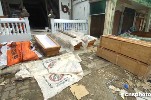 在印度尼西亞尼亞斯島災區(qū),死尸挖掘出來后放在路旁,沒有及時運走,散發(fā)惡臭,影響環(huán)境衛(wèi)生。作者:鄧慶樂