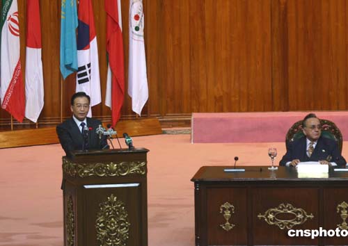 溫家寶今天出席亞洲合作對(duì)話第四次外長(zhǎng)會(huì)議開(kāi)幕式并講話。他表示,經(jīng)過(guò)多年探索,中國(guó)找到了一條符合國(guó)情的發(fā)展道路,這就是中國(guó)特色社會(huì)主義現(xiàn)代化建設(shè)道路,也就是和平發(fā)展的道路。二十多年來(lái),這條道路,不僅使中國(guó)自己發(fā)展了起來(lái),而且給亞洲國(guó)家?guī)?lái)了機(jī)遇,也促進(jìn)了世界的和平與發(fā)展。