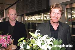 四月六日,前世界排名第一的網(wǎng)壇大腕考瑞爾(右)飛抵北京,將出席八日舉行的中國網(wǎng)球風(fēng)云榜頒獎典禮?既馉柺巧蟼世紀(jì)九十年代叱咤網(wǎng)壇的風(fēng)云人物之一,與桑普拉斯、阿加西、張德培一起并稱美國“四大天王”。作者:武仲林