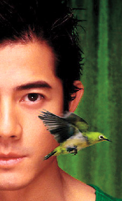 拍攝當日,上海正值嚴寒夜,偌大的影樓更顯得寒氣逼人,當人人身穿羽絨,唯獨城城背心一度,把他冷得手腳僵硬,大家見狀,急忙張羅暖風機圍著“城城”,讓他取暖。原本有準備長袖綠衣造型,但愛漂亮的“城城”堅決穿背心上陣。至于何以選用綠色與青鳥作今次海報的主調(diào)?“阿叔”表示:“因為綠色是今年流行的顏色,至于青鳥,可以是喜鳥,也可以是躍動,可以有好大想象空間!迸臄z時,“城城”坐在綠布幕前,加上燈光營造,他仿如綠翡翠般亮麗,甚具王者氣派。