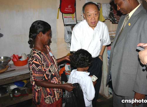 圖:中國外長李肇星向斯里蘭卡災(zāi)民捐款