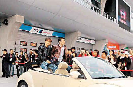 據(jù)香港媒體報(bào)道,眾演員中午時(shí)分抵達(dá)上海,首先舉行記者會(huì),之后到上海F1賽車場欣賞賽車及飄移表演,眾演員欣賞過四位國際級(jí)賽車飄移高手表演,之后大會(huì)安排周杰倫、陳冠希、鈴木杏坐開篷車出場,車迷更加瘋狂,蜂擁上前希望一睹偶像風(fēng)采,場面熱鬧。
