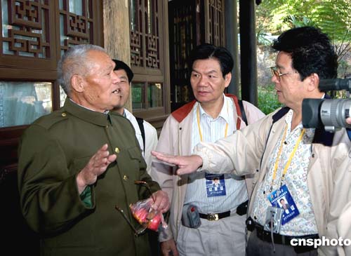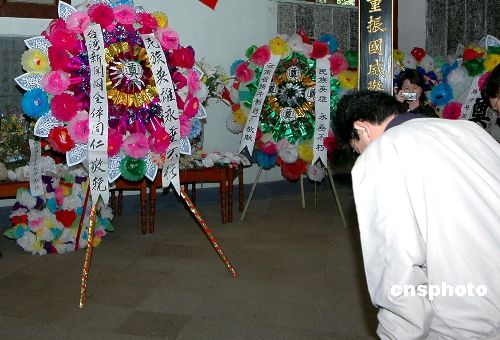 為抗日壯士的愛國精神所感,臺灣記者自發(fā)向英魂們敬獻(xiàn)花圈。兩位代表神情肅穆,恭持花圈,沿著綠樹掩映的甬道登上忠烈祠。祠內(nèi)懸掛孫中山先生畫像,墻壁上鐫刻著九千余位烈士的英名,氣氛莊嚴(yán)凝重。臺灣記者將寫有“民族英雄永垂不朽”挽聯(lián)的花圈置于擺滿鮮花的案前,然后鞠躬致敬,并在祠內(nèi)合影留念。