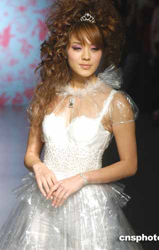 歌星官恩娜4月16日在香港為著名時裝設(shè)計師尹泰尉時裝演譯作品。作者:鄧慶樂