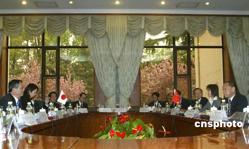 中新社北京四月十七日電 四月十七日晚,外交部長李肇星與日本外務(wù)大臣町村信孝舉行會談。