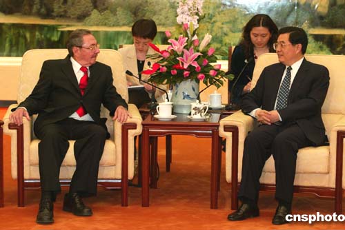 中新社北京四月十八日電(記者張朔)中共中央總書記、國家主席胡錦濤今天下午在人民大會堂會見了古共中央第二書記、國務(wù)委員會第一副主席兼部長會議第一副主席勞爾·卡斯特羅,雙方進(jìn)行了親切友好的談話。