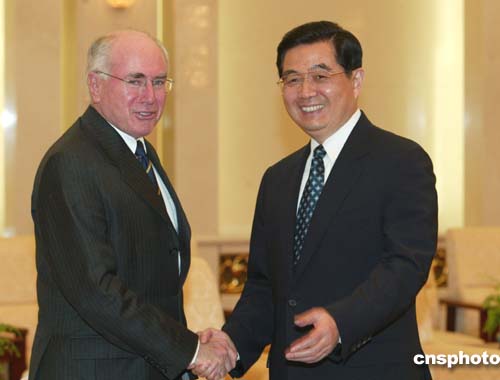 中國國家主席胡錦濤四月十八日在北京會見澳大利亞總理霍華德。作者:滿會喬