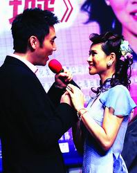 中新網(wǎng)4月20日電 昨天,上海話劇中心五樓排練廳,大型多媒體音樂劇《周璇》正在排周璇第一次代替王人美作為主演上臺的戲。主演伊能靜在現(xiàn)場非常活躍,鬼臉、小動作不斷。別以為她很輕松,其實(shí),她評價這次演出比她這些年來的任何表演都難,連和男主角林依輪的感情戲,她都難以攻克,“我們的雙眼不能實(shí)質(zhì)性對視!”