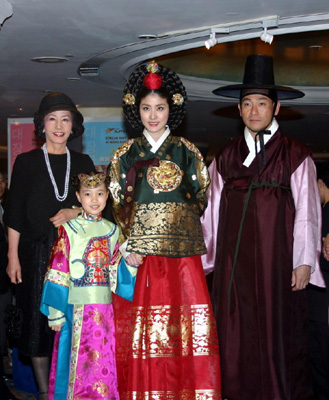 對于當晚一身的皇后打扮,Kelly坦言好滿意。她表示,當初未梳尚宮發(fā)型時,亦好擔心,因為她怕梳起這個發(fā)型后,會很老相,不太好看,首次梳這個發(fā)型,沒想到有有出人意表的效果。當晚的發(fā)型師,便是《大長今》一劇的發(fā)型師。而皇后娘娘的服飾,是三四層布制成,內里還有一些底布,Kelly最初穿得很費勁,還把服飾穿錯,幸得韓國的工作人員糾正。而頭上的尚宮發(fā)型,Kelly坦言十分重,足有十幾二十磅,不過她覺得自己梳這個發(fā)型,看來很有型,亦好有氣勢,令她好滿意。