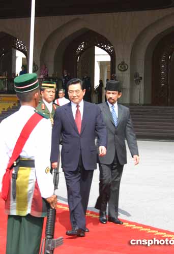 圖:文萊王宮舉行儀式歡迎胡錦濤來(lái)訪