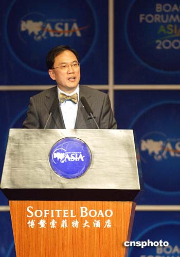 四月二十三日,博鰲亞洲論壇二○○五年年會(huì)在海南博鰲開幕,香港特別行政區(qū)署理行政長官曾蔭權(quán)發(fā)表主旨演講。作者:廖文靜