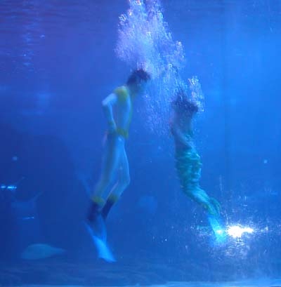 4月25日,中國(guó)網(wǎng)絡(luò)媒體山東行采訪團(tuán)的記者們采訪了蓬萊海洋極地世界,在館內(nèi),記者們看到了剛剛?cè)胱〉摹氨廊恕北睒O大白鯨和海象、海豚的精彩表演等海洋世界的奇妙景象。此外,“美人魚”表演水中童話劇“海的女兒”,演員在水中與各種魚兒各展絕技,翩翩起舞,讓老記們留連忘返。