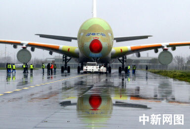 裝有4個引擎的巨無霸可以乘坐840名旅客,連續(xù)飛行1.5萬千米,被認(rèn)為是對波音747在巨型客機(jī)市場的挑戰(zhàn)。
