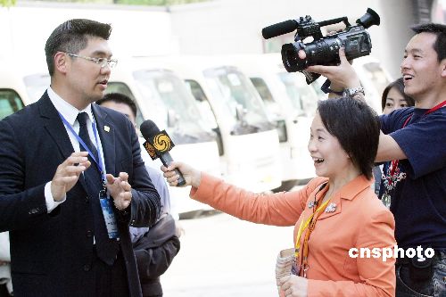 連戰(zhàn)的長(zhǎng)子連勝文四月二十七日在南京參觀(guān)中國(guó)近代史遺址博物館時(shí)接受記者采訪(fǎng)。作者:毛建軍