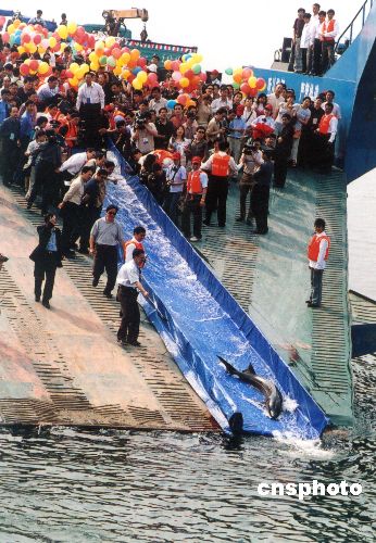| 4月28日,由國家農(nóng)業(yè)部、三峽開發(fā)總公司主辦,中華鱘研究所承辦的“2005長江珍稀水生野生動物增殖放流活動”在宜昌城區(qū)三碼頭舉行。當(dāng)日,兩尾野生中華鱘親魚和10200尾“子一代”中華鱘被放歸長江,同時被放流的還有3000尾國家二級水生保護(hù)動物--胭脂魚幼苗。作者:劉君鳳