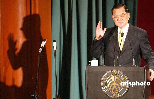 學生:您好,我是來自北京大學政府管理學院的碩士生,我們北大學子對您的大陸之行一直非常期待,記得在4天前當您乘坐的飛機剛剛降落在南京的祿口機場時您曾發(fā)表感言,真是有一種相見恨晚的感覺,剛才您也提到現(xiàn)今的大陸已經跟您的記憶完全不吻合了,請問在時隔將近60年的時間,當您再踏上大陸的土地時,您眼前見到的和您記憶及想象有什么最大的不同?謝謝。