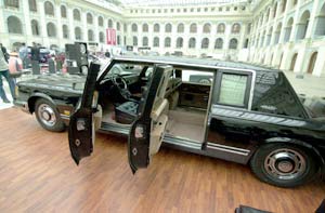 車展組織者表示,觀眾不僅可以觀看、觸摸這些車,還可以購買,任何富翁都可乘坐蘇俄前總統(tǒng)曾經(jīng)坐過的汽車。2004年,這輛汽車由莫斯科汽車商通過特殊競標從克里姆林宮特種車庫中采購而來。
