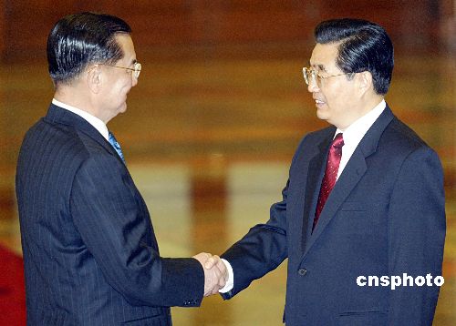 胡錦濤會見中國國民黨主席連戰(zhàn)