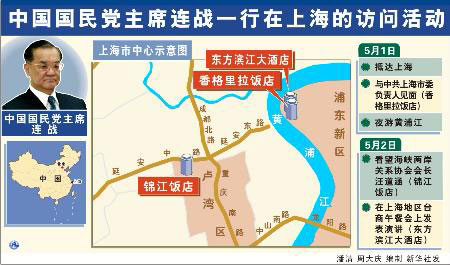5月1日抵滬后,連戰(zhàn)將與中共上海市委負(fù)責(zé)人見(jiàn)面,當(dāng)晚夜游黃浦江。
