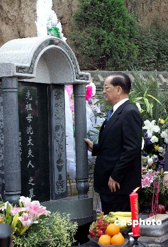 一日上午九時(shí)三十分許,陽(yáng)光普照草木青蔥的墓園,連戰(zhàn)先生凝視祖母墳塋,深深三叩首;這三叩首,聊以慰藉他六十余年來(lái)對(duì)獨(dú)處西安的祖母的思念、掛懷。