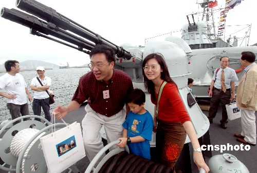 上午十時,部分香港青少年團體及學校師生約四千多人來到昂船洲海軍基地,饒有興趣地參觀艦艇,觀摩水兵文化生活,并進行聯(lián)歡。