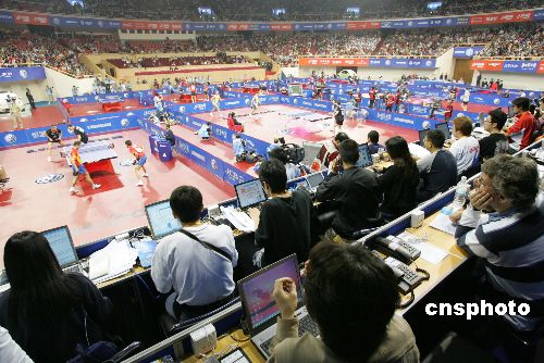 圖:第四十八屆世乒賽新聞大戰(zhàn)“規(guī)?涨啊