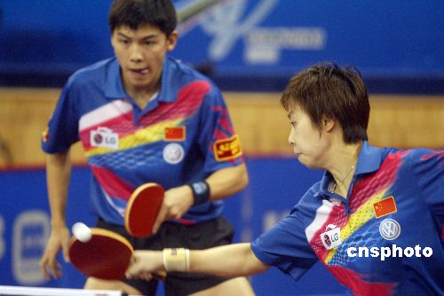 五月二日,在上海體育館舉行的第四十八屆世界乒乓球錦標(biāo)賽進(jìn)入了第三天,混雙大戰(zhàn)全面打響,中國(guó)名將張怡寧、陳玘在比賽中輕松戰(zhàn)勝對(duì)手,晉級(jí)下一輪比賽。作者:盛佳鵬
