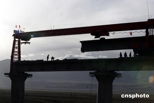 正在修建中的青藏鐵路 作者:中新社記者 武仲林
