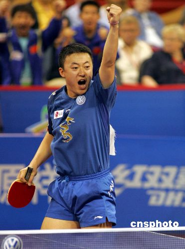 中新社上海五月六日電 (記者 王歡)丹麥人梅茲最后一個(gè)回球滾落網(wǎng)底,中國(guó)選手馬琳以四比零斬落了本屆世乒賽男子單打的最強(qiáng)“黑馬”,不僅實(shí)現(xiàn)了與隊(duì)友王勵(lì)勤在男單決賽中的勝利會(huì)師,也提前為中國(guó)乒乓球隊(duì)實(shí)現(xiàn)了全部五個(gè)單項(xiàng)冠軍的包攬。
