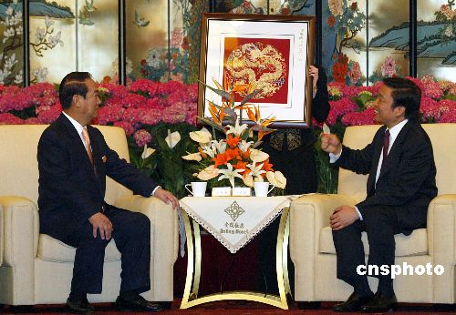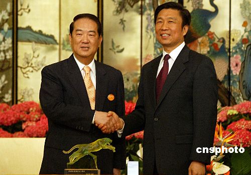中新社南京五月七日電(記者 王國安 丁梅)五月的南京,“正是江南好風景”。今天中午,中共江蘇省委書記李源潮在金陵飯店親切會見了親民黨主席宋楚瑜和夫人及訪問團全體成員。