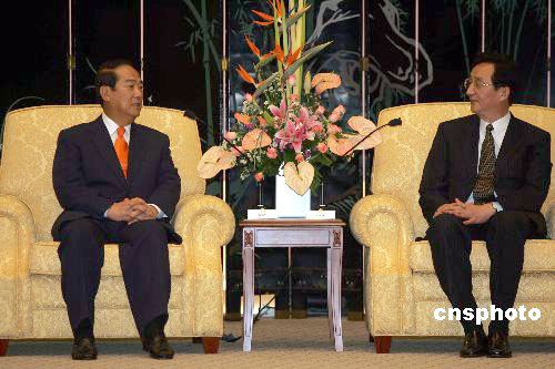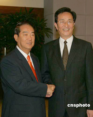五月七日晚,中共中央政治局委員、上海市委書記陳良宇在上?萍拣^會見了親民黨主席宋楚瑜率領(lǐng)的親民黨大陸訪問團一行。作者:潘索菲