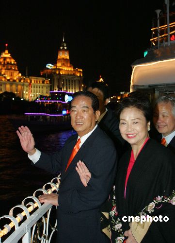 中新社上海五月七日電(記者許曉青 曾嘉)華燈璀璨,在一陣陣江南童謠聲中,親民黨主席宋楚瑜攜夫人陳萬水登上了“上海風(fēng)采”號游船,夜游黃浦江。宋楚瑜夫婦在船舷上感慨:“百聞不如一見”,宋楚瑜還饒有興致地操起滬語,驚嘆說:“變化大得不得了!”