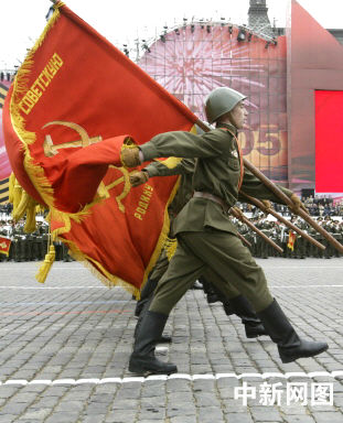 5月9日,俄羅斯在莫斯科紅場(chǎng)舉行紀(jì)念衛(wèi)國(guó)戰(zhàn)爭(zhēng)勝利60周年慶典。
