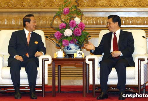 胡錦濤強(qiáng)調(diào),兩岸合則兩利,分則兩害。構(gòu)建和平穩(wěn)定發(fā)展的兩岸關(guān)系,對兩岸同胞有利,對中華民族的長遠(yuǎn)發(fā)展有利。我們黨愿同貴黨繼續(xù)為此一道努力。今年三月,我提出了新形勢下發(fā)展兩岸關(guān)系的四點(diǎn)意見,即:堅(jiān)持一個(gè)中國原則決不動(dòng)搖,爭取和平統(tǒng)一的努力決不放棄,貫徹寄希望于臺灣人民的方針決不改變,反對“臺獨(dú)”分裂活動(dòng)決不妥協(xié)。