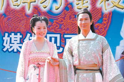 不過在現(xiàn)實生活中,看起來很相配的關(guān)詠荷和歐陽振華并不是情侶,與關(guān)詠荷真正情牽一線的是在《大事件》、《千王之王2000》以及電視劇《妙手仁心》、《金裝四大才子》等劇中有著出色表現(xiàn)的張家輝。這一次《醉打金枝》重拍,張家輝代替歐陽振華成為“新駙馬”郭暖,與蔡琳上演了一段古裝喜劇中的浪漫情緣,這種與現(xiàn)實生活中情侶角色的交錯,實在讓人頗感有趣。