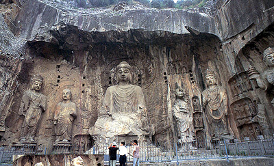 龍門石窟是我國著名的三大石刻藝術(shù)寶庫之一,位于洛陽南郊12公里處的伊河岸邊,此處東西兩山對峙,伊水東流,望之若闋,故稱伊闋。經(jīng)過自北魏至北宋400余年的開鑿,至今仍存有窟龕2100多個,造像10萬余尊,碑刻題記3600余品,數(shù)量之多位于全國各大石窟之首。其氣魄之博大,蘊涵之深邃,雕刻之精湛,堪稱世界雕塑藝術(shù)寶庫中光彩奪目的奇葩。
