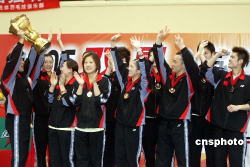 五月十五日晚,第九屆蘇迪曼杯世界羽毛球混合團體錦標賽決賽在北京首都體育館結束,在中國隊對陣印度尼西亞隊的比賽中,中國隊憑借混雙、男單、女單三戰(zhàn)全勝的戰(zhàn)績,順利奪得蘇迪曼杯。