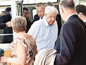 中新網(wǎng)5月17日電 據(jù)俄羅斯《共青團(tuán)真理報(bào)》報(bào)道,俄羅斯前總統(tǒng)葉利欽16日乘專機(jī)飛抵烏拉爾地區(qū)基斯洛沃茨克市礦泉水城機(jī)場(chǎng),同行乘客除以妻子奈娜為首的家人外,還有50年前烏拉爾工學(xué)院的同班同學(xué),一同前往療養(yǎng)勝地舉行聚會(huì)。