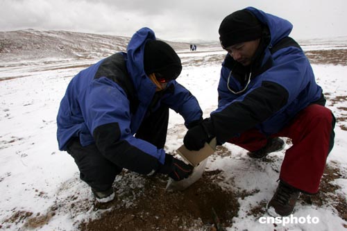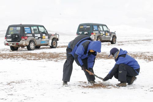 探險隊為環(huán)境保護科考項目采集土壤標本(圖)