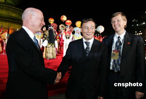 “在這美好的夜晚……我代表全體北京市民、向各位賓朋表示熱烈的歡迎……北京是一座歷史悠久、文化底蘊(yùn)深厚的古都,同時(shí)也是一座朝氣蓬勃、向現(xiàn)代化快速邁進(jìn)的城市……今天,一千五百萬(wàn)勤勞和智慧的北京市民正在為實(shí)現(xiàn)新北京、新奧運(yùn)的戰(zhàn)略構(gòu)想而努力工作……北京將以更加積極的姿態(tài)走向世界……熱烈歡迎中外跨國(guó)公司、金融機(jī)構(gòu)、高科技企業(yè)現(xiàn)代服務(wù)業(yè)企業(yè)來(lái)京投資,共享中國(guó)機(jī)會(huì)、北京機(jī)會(huì)”,王岐山依照與會(huì)諸人座位上早已放置的一份精美講稿原字誦讀。