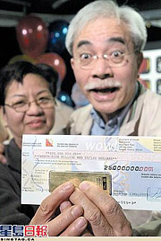 據(jù)報(bào)道,華文生與妻子回家則坐上豪華高級(jí)轎車。這名獨(dú)得巨獎(jiǎng)的60歲長者對(duì)獲得幸運(yùn)之神眷顧感到十分興奮。
