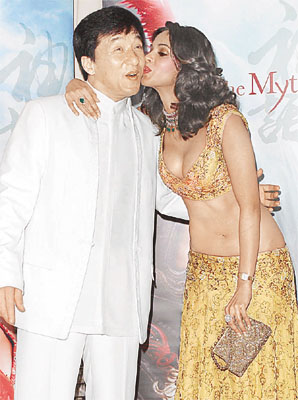 《神話》在影展中播出了大約一分多鐘的片段,當(dāng)中除了千軍萬馬的大場面,金喜善寬衣解帶為成龍療傷的場面也很有看頭。成龍?jiān)谟浾邥媳硎倦m然戲中和金喜善有感情戲,但堅(jiān)拒激吻,唯一的激情戲中,金喜善卻笑不停,浪費(fèi)了很多時(shí)間,也讓成龍忍不住問:“到底我這個樣子有什么好笑!”