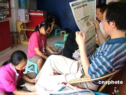 5月19日,重慶榮昌市民在某擦鞋連鎖店里接受擦鞋服務(wù)時(shí)閱讀報(bào)紙。據(jù)了解,該擦鞋連鎖店經(jīng)營(yíng)者不僅將“一元錢(qián)擦鞋”的小生意開(kāi)成連鎖店,還在店內(nèi)為顧客提供茶水、報(bào)刊閱覽等免費(fèi)服務(wù)。增添文化內(nèi)涵“連鎖擦鞋”受到市民的歡迎,每天顧客絡(luò)繹不絕。作者:朱蕓鋒
