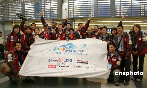 | “2005地球第三極珠峰大行動”五月二十日從北京啟程。三十三名志愿者從首都機(jī)場出發(fā)前往西藏拉薩,他們將和西藏登山隊(duì)專業(yè)隊(duì)員、當(dāng)?shù)馗呱絽f(xié)作一起,克服珠峰地區(qū)高寒、狂風(fēng)、缺氧、低壓等惡劣的自然環(huán)境,對存留在珠穆朗瑪峰海拔5120米大本營至海拔8000米之間的登山廢棄物進(jìn)行全面清理。作者:陸媛