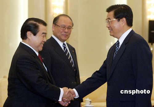 胡錦濤說,中國黨和政府高度重視中日關(guān)系,真誠希望兩國和平共處、世代友好、互利合作、共同發(fā)展。他表示,相信只要雙方堅持從戰(zhàn)略高度和長遠角度把握和處理中日關(guān)系,嚴格遵守《中日聯(lián)合聲明》等三個政治文件的原則和精神,堅持以史為鑒、面向未來,正確處理好歷史問題和臺灣問題,通過對話和協(xié)商,妥善解決彼此間的分歧,擴大兩國在各領(lǐng)域的互利合作,不斷鞏固和加強兩國關(guān)系的政治基礎(chǔ)、經(jīng)濟基礎(chǔ)和社會基礎(chǔ),中日關(guān)系就能長期健康穩(wěn)定地向前發(fā)展。