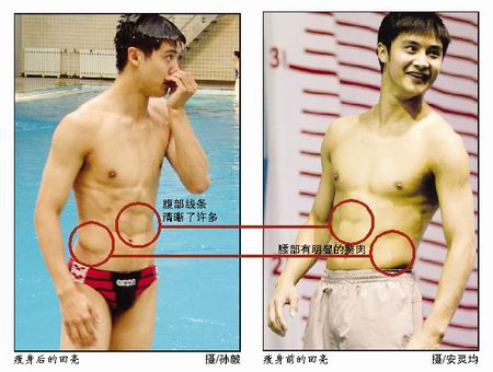 現(xiàn)在的田亮跟三月份不同,原有些模糊的腹部曲線清晰了很多,側(cè)面的肌肉更加緊湊,整個人也越發(fā)輕盈了,連他自己都贊嘆這是“苦練的結(jié)果”。