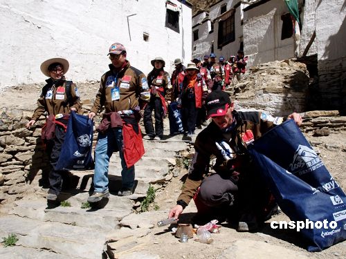 | 5月26日,“2005地球第三極珠峰大行動(dòng)”志愿者一行,在當(dāng)?shù)夭孛窈陀慰蛡児餐瑓⑴c下,對(duì)位于西藏定日縣境內(nèi)海拔4400米的協(xié)格爾曲德寺進(jìn)行了清掃和環(huán)保宣傳活動(dòng)。協(xié)格爾曲德寺創(chuàng)建于1385年,是一座依山而建的古寺。一上午的清掃工作成果頗豐,沿路的山洼里有一些多年無(wú)人問津的“死角”,滿是鐵皮手電筒,廢棄電池,鋁制飲料罐等對(duì)環(huán)境危害極大的不可降解性垃圾。作者:王驥
